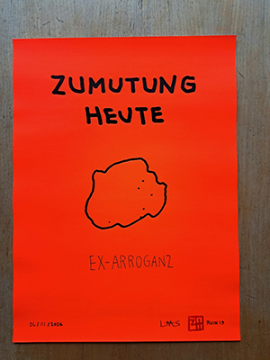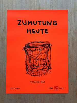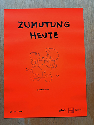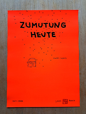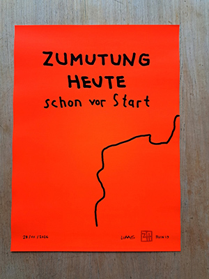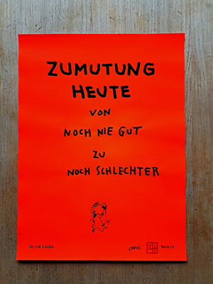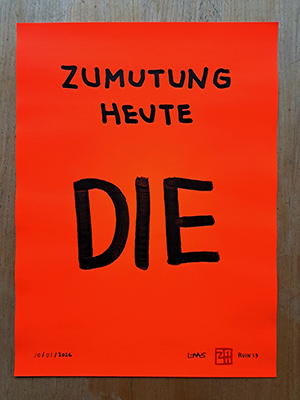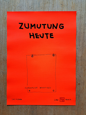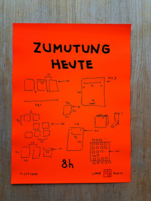 Unikatzeichnung für jeden Tag des Jahres 2026 auf vorgedrucktem, signalfarbigem, 80g Papier ca. 40 x 30 cm